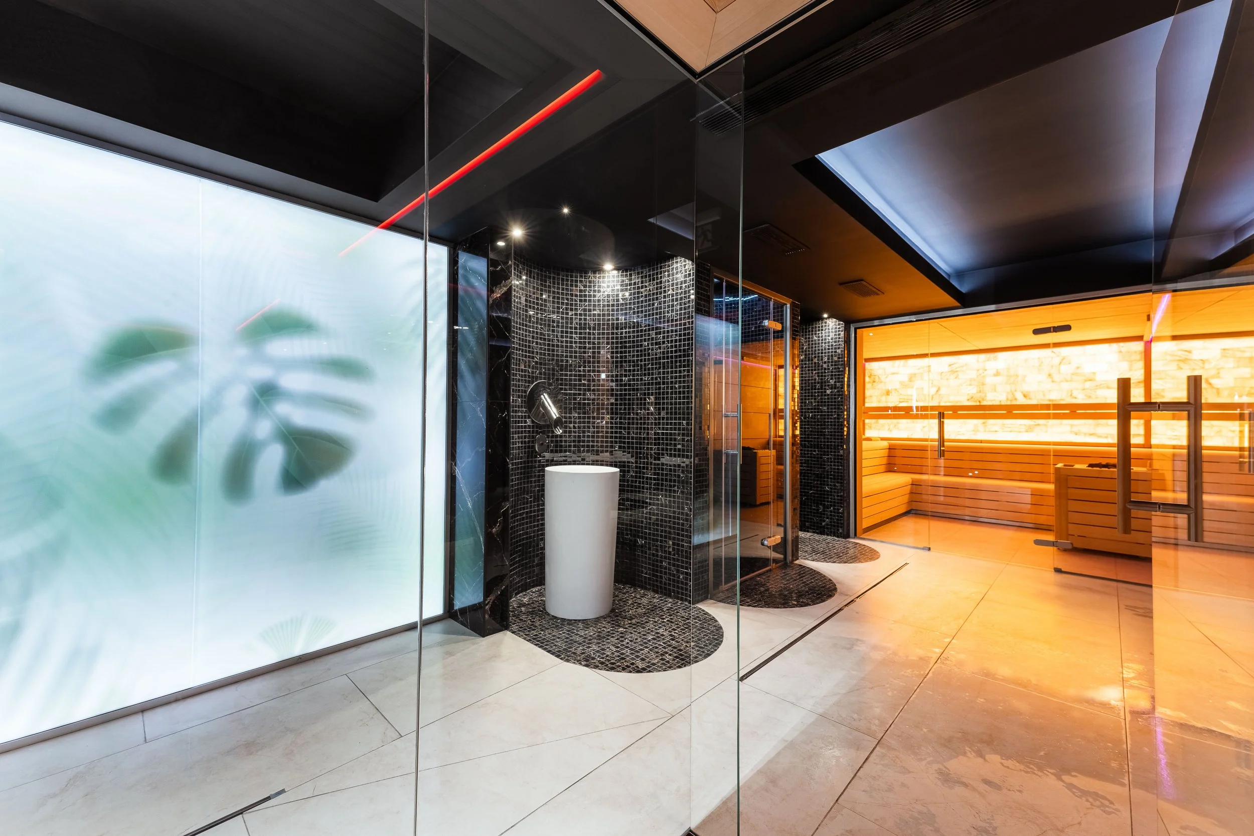 Spațiul cel mai iubit este zona de SPA de aproximativ 170 metri pătrați. Urmărind un ritual bine stabilit, oaspeții se pot bucura de baie în jacuzzi, relaxare în cele 4 saune (saună finlandeză cu sare, biosaună, saună umedă și saună cu infraroșu), duș emoțional, fântână de gheață, iar la final să încheie cu o baie rapidă în bazinul cu apă rece. Tot acest spațiu a fost refăcut de la zero: compartimentări, instalații și finisaje. Au fost și câteva provocări generate de noile echipamente pe care toate aceste incinte le folosesc, dar soluțiile au fost găsite și implementate fără comrpomisuri care țin de design sau funcționalitate.